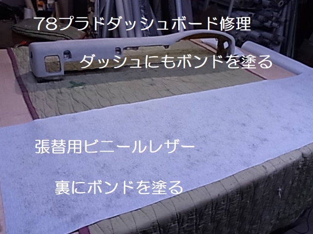 張替用レザーとダッシュボード本体に下地ボンドを塗ります